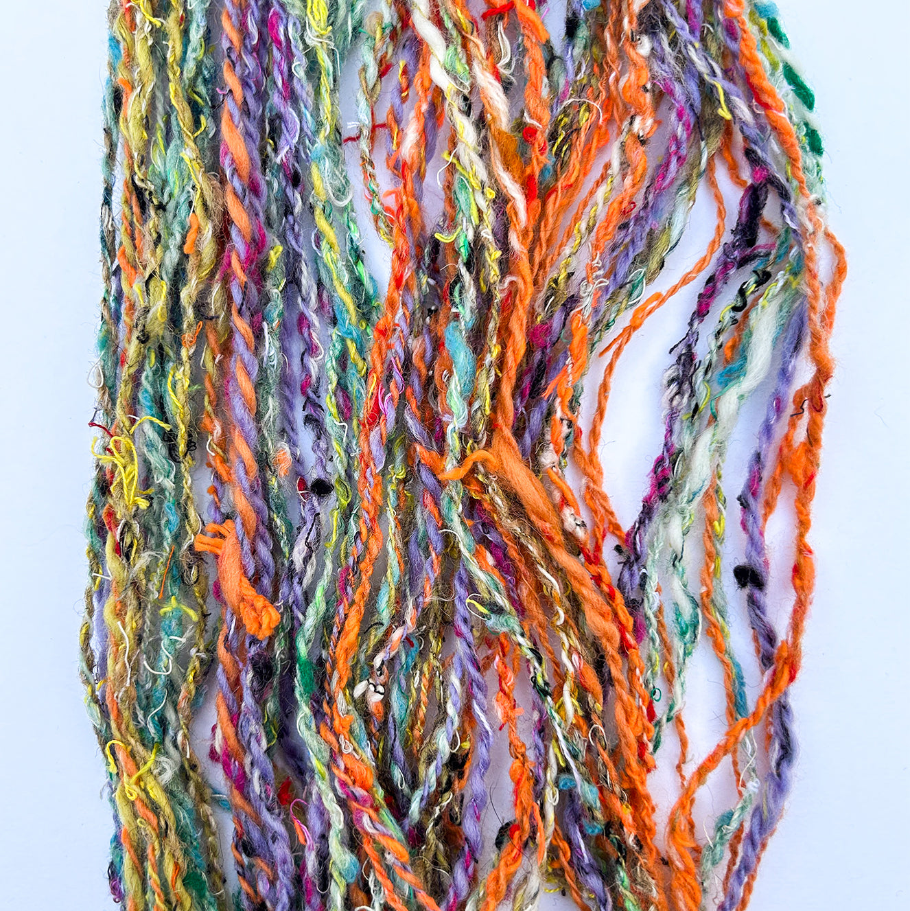 "Scappy #2" recycled yarn and silk chain plied skein (3ply/130g)