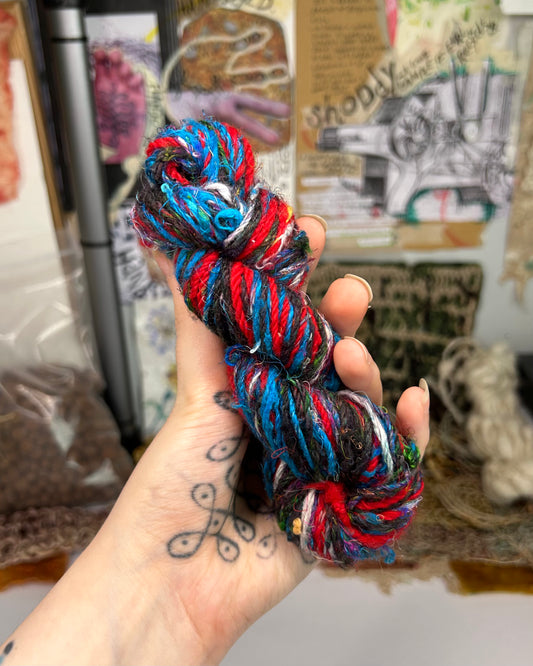 "Scappy #2" recycled yarn and silk chain plied skein (3ply/130g)