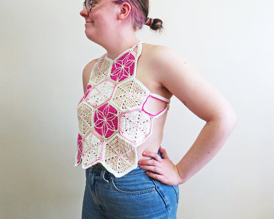 'Glitch' Handkerchief Top ☆ Scrap Yarn Crochet tie back