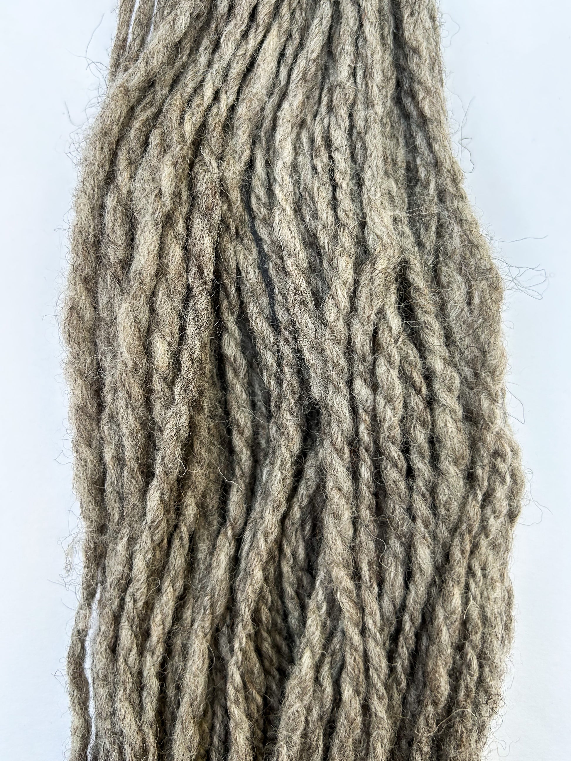 A balanced 2 ply, made with 100% Natural Grey Shetland Wool. Spun and Plied on my beloved Ashford Spinning Wheel.