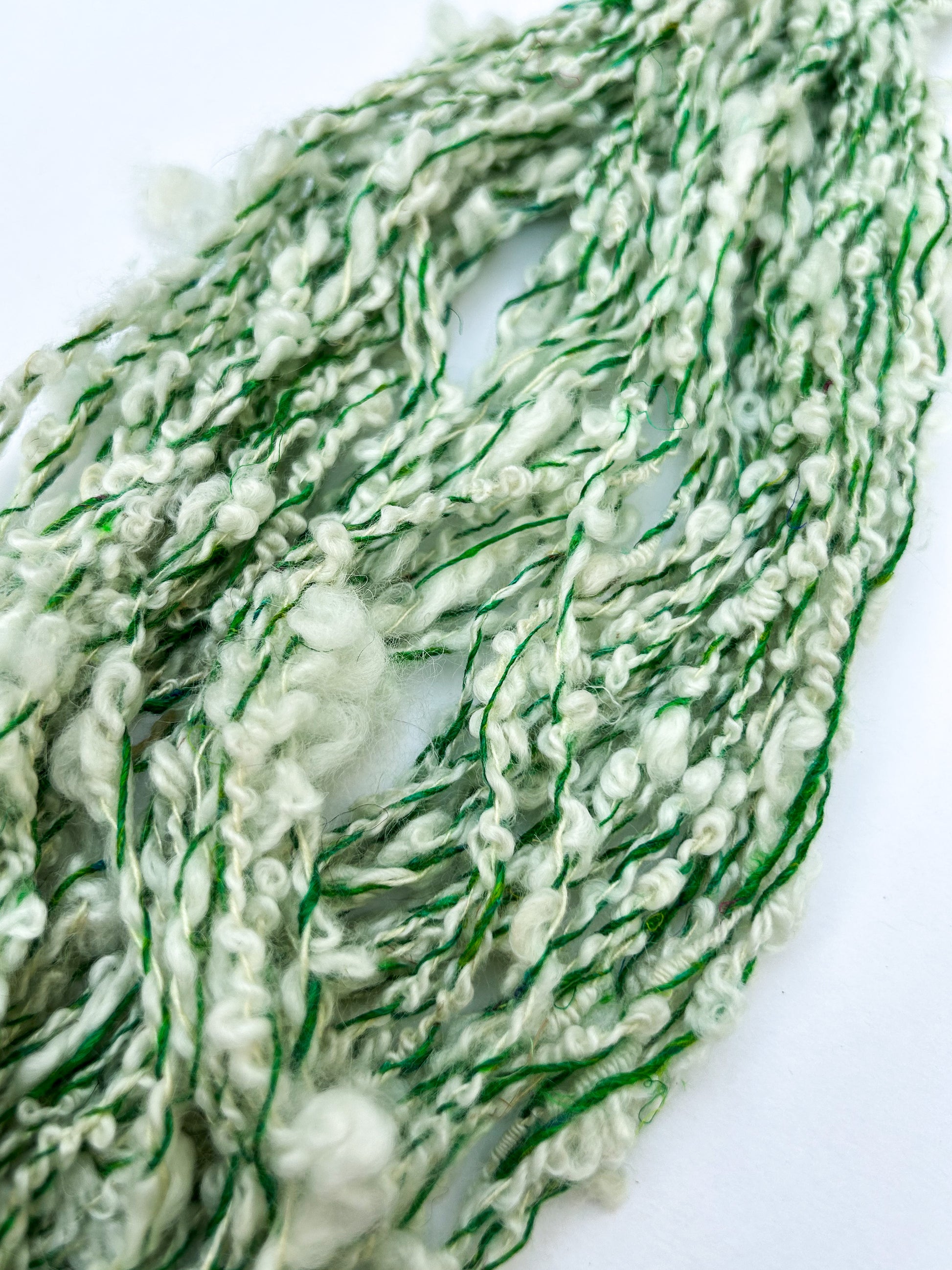 Handspun Baby Alpaca and Silk Bouclé Skein ☆ 80g 3ply Alpaca, Tussah and Sari Silk Yarn
