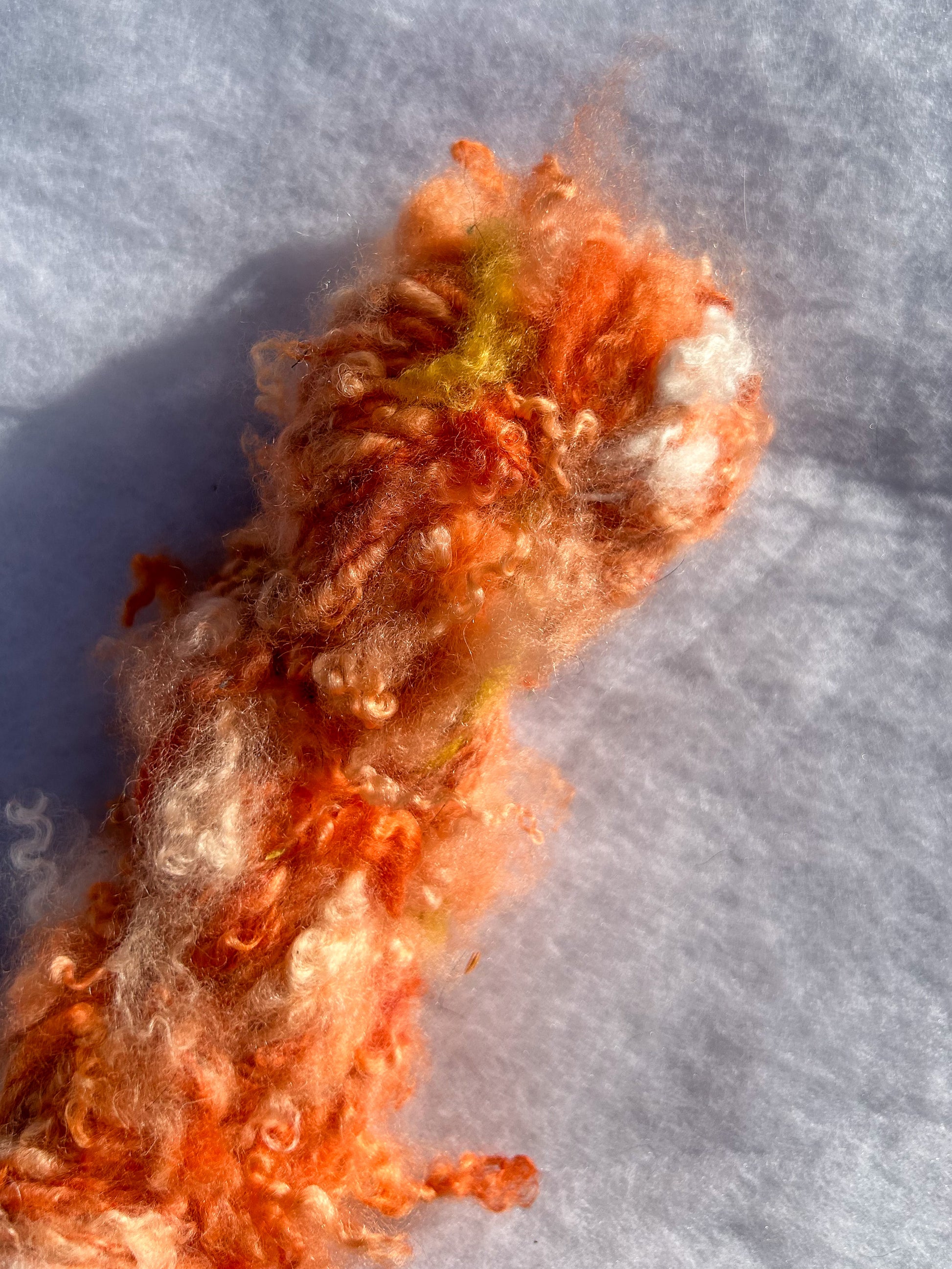 The baby alpaca are soft, fluffy and lustrous. It's soft, smooth and luxurious! Lock spun shows of the amazing defined curls of the natural fleece. It has a fluffy texture when fabricated. A truly unique yarn. Perfect for any textile art. From crochet, to knit, to weave.