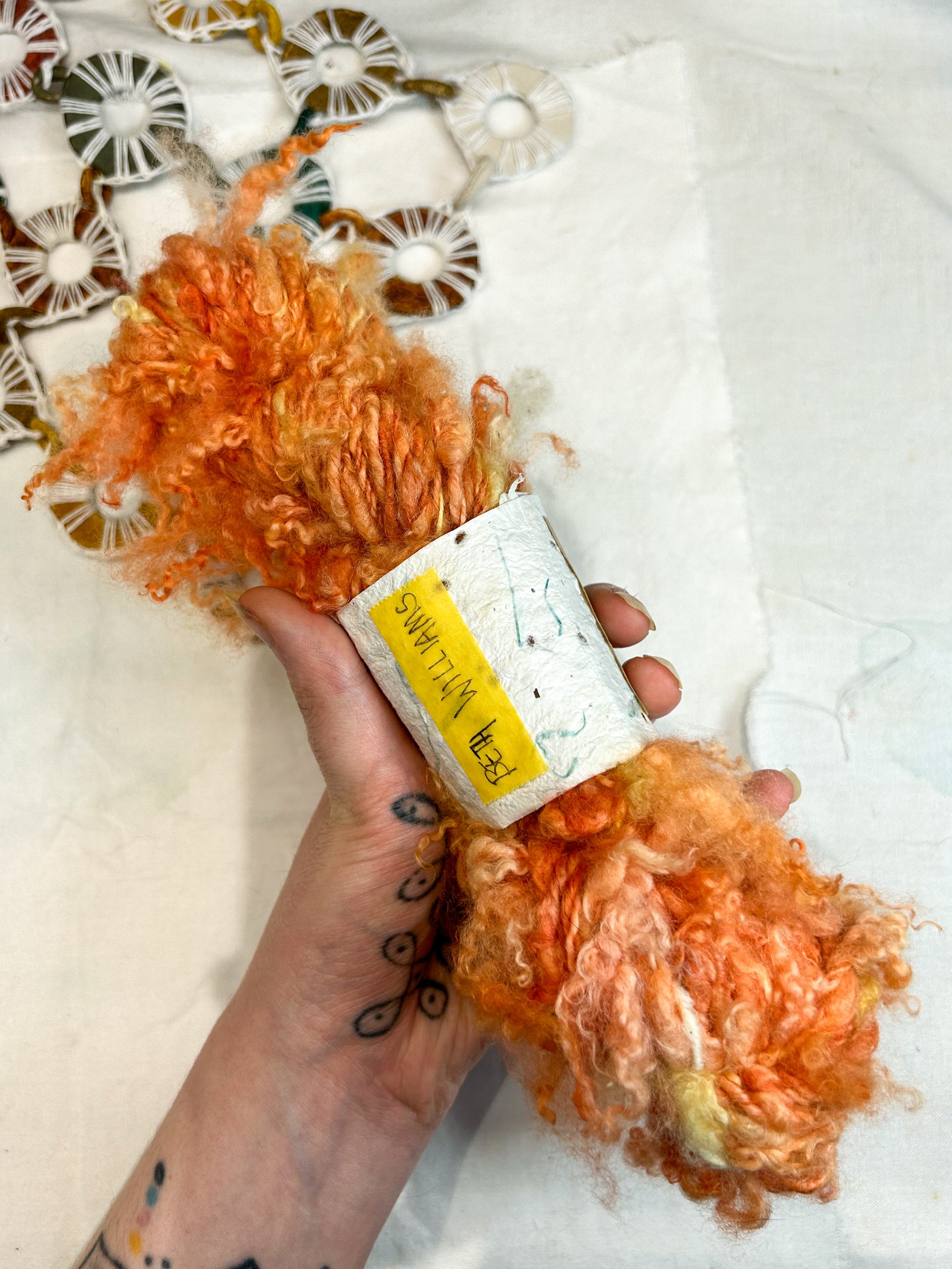 A Unique balanced Lock/tail spun 2ply, Naturally Dyed red (Madder) Baby Alpaca yarn, spun on my beloved Ashford Spinning Wheel.