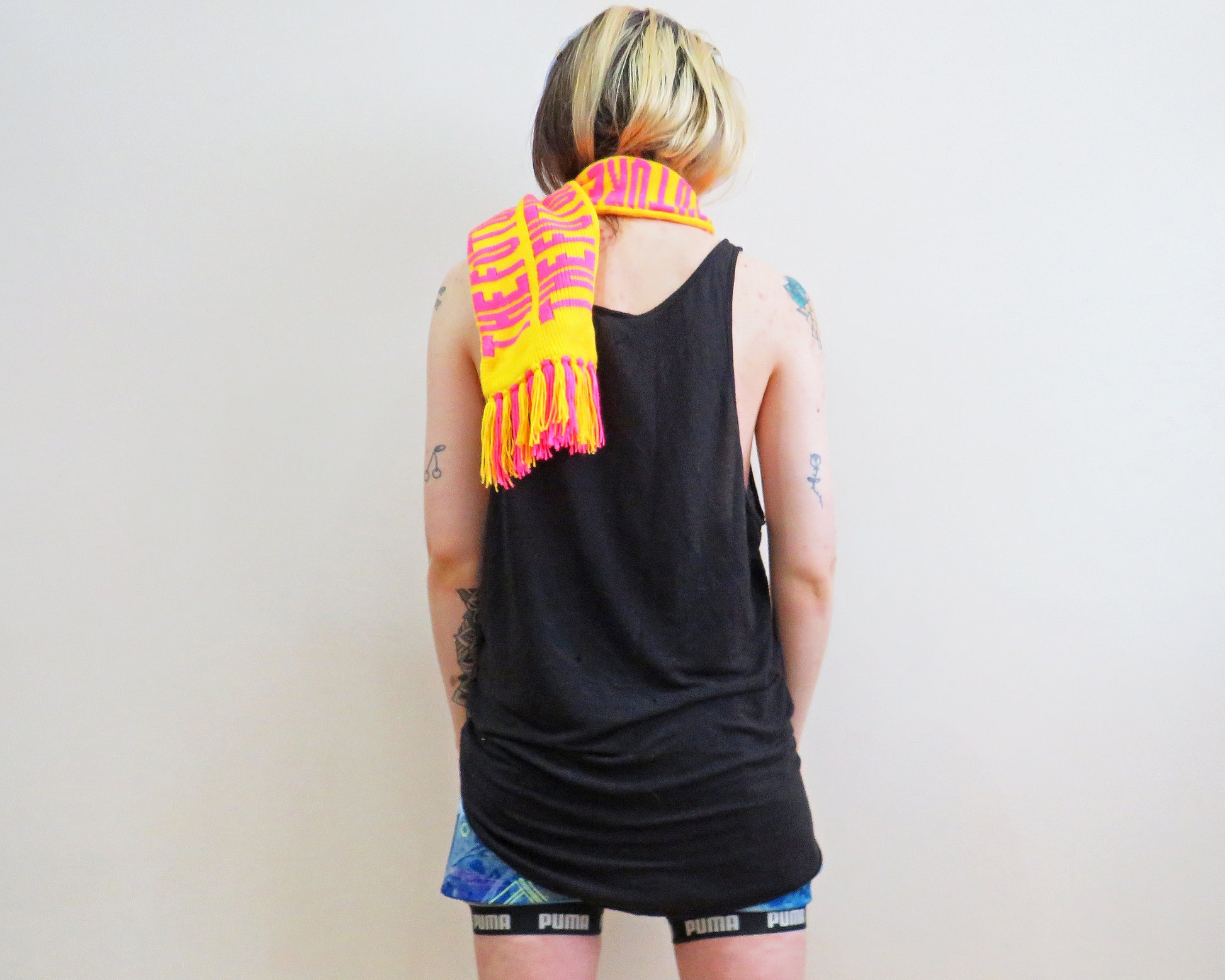 A bold and bright unique scarf. The perfect scarf for any person of any gender or sexuality. A play on the slogan 'the future is female'.